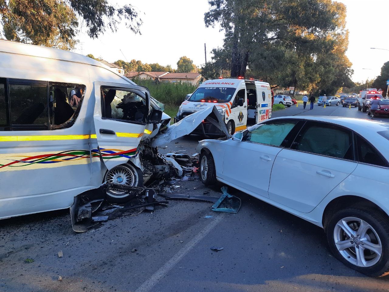 Reports indicate that a mini-bus taxi and car were involved in a collision.